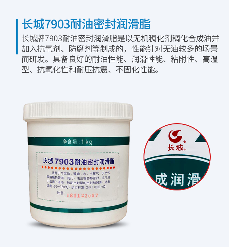 長(zhǎng)城牌7903耐油密封潤(rùn)滑脂是以無(wú)機(jī)稠化劑稠化合成油并加入抗氧劑、防腐劑等制成的,性能針對(duì)無(wú)油較多的場(chǎng)景而研發(fā)。具備良好的耐油性能、潤(rùn)滑性能、粘附性、高溫型、抗氧化性和耐壓抗震、不固化性能。主要用于與汽油、煤油、潤(rùn)滑油、水、乙二醇和石油液化氣等介質(zhì)接觸的設(shè)備和零件的密封和潤(rùn)滑。該脂已經(jīng)在石油勘探、鍋爐、鋼鐵、汽車、航空等領(lǐng)域大量使用,在抗溶解、分散的實(shí)用性方面表現(xiàn)優(yōu)良,性能穩(wěn)定。
