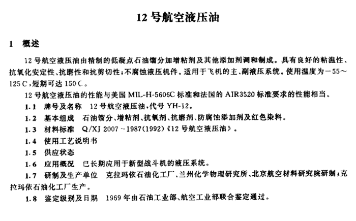 12號航空液壓油介紹